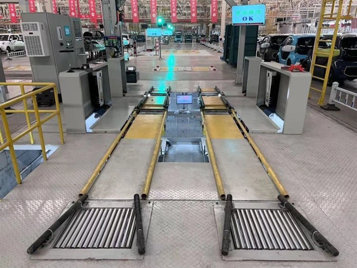 The non-contact four-wheel positioning instrument is a special device used to measure and adjust the wheel positioning of the assembled vehicle. Through the positioning instrument, the four-wheel positioning of the vehicle is located and measured/judged to ensure that the wheel positioning meets the design parameters and requirements.